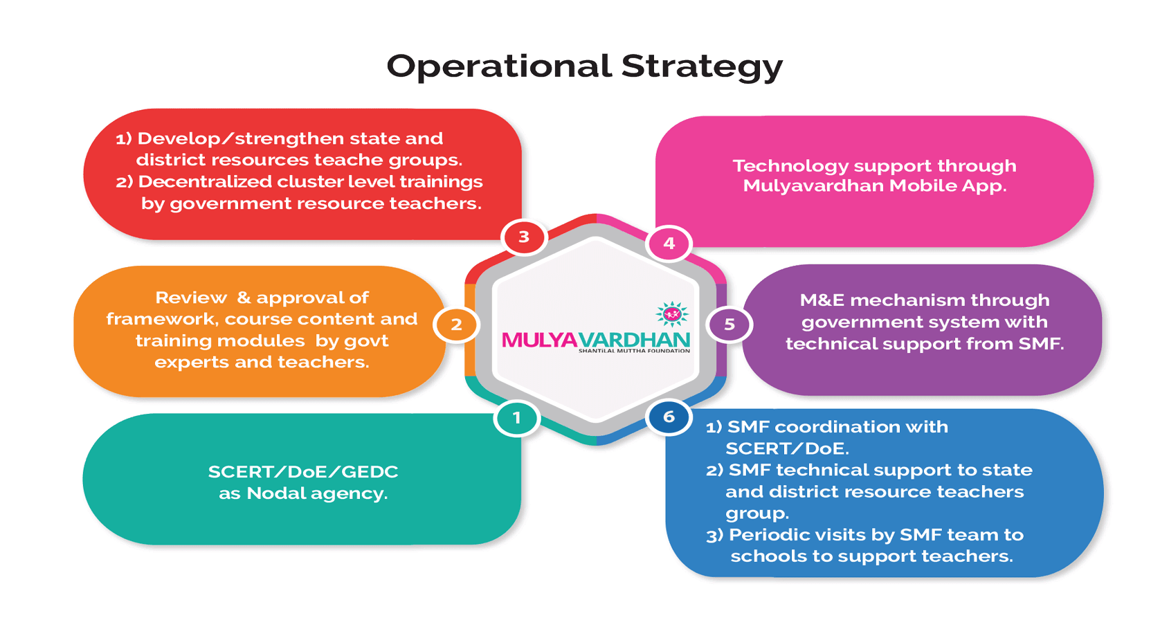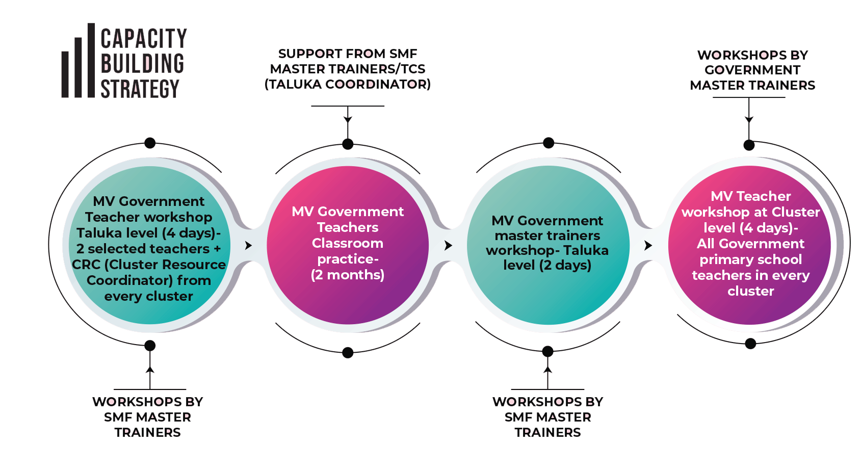 SMF works in collaboration with the state government and has support mechanisms at each step from teachers in schools to SCERT resource groups. The framework and curriculum are also regularly reviewed by govt. experts and teachers.
