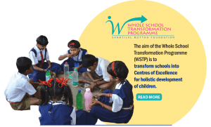 The Whole School Transformation Programme (WSTP) is a systematic and scientific approach to developing a set of values and goals for attaining quality education that will help to achieve the vision of transformation in students, teachers, leaders, and the community. This approach to change seeks to be adequate to address continual progress. Under WSTP, the SMF team works collaboratively with the School heads and proactive school teachers, school in-charges, supervisors, and members of the SMC